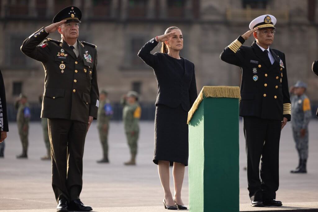 Acompañada por integrantes de su gabinete, entre ellos los secretarios de la Defensa Nacional, Ricardo Trevilla; de Marina, Raymundo Morales; de Gobernación, Rosa Icela Rodríguez; y de Seguridad y Protección Ciudadana, Omar García, la mandataria rindió tributo a quienes perdieron la vida en ambas tragedias.